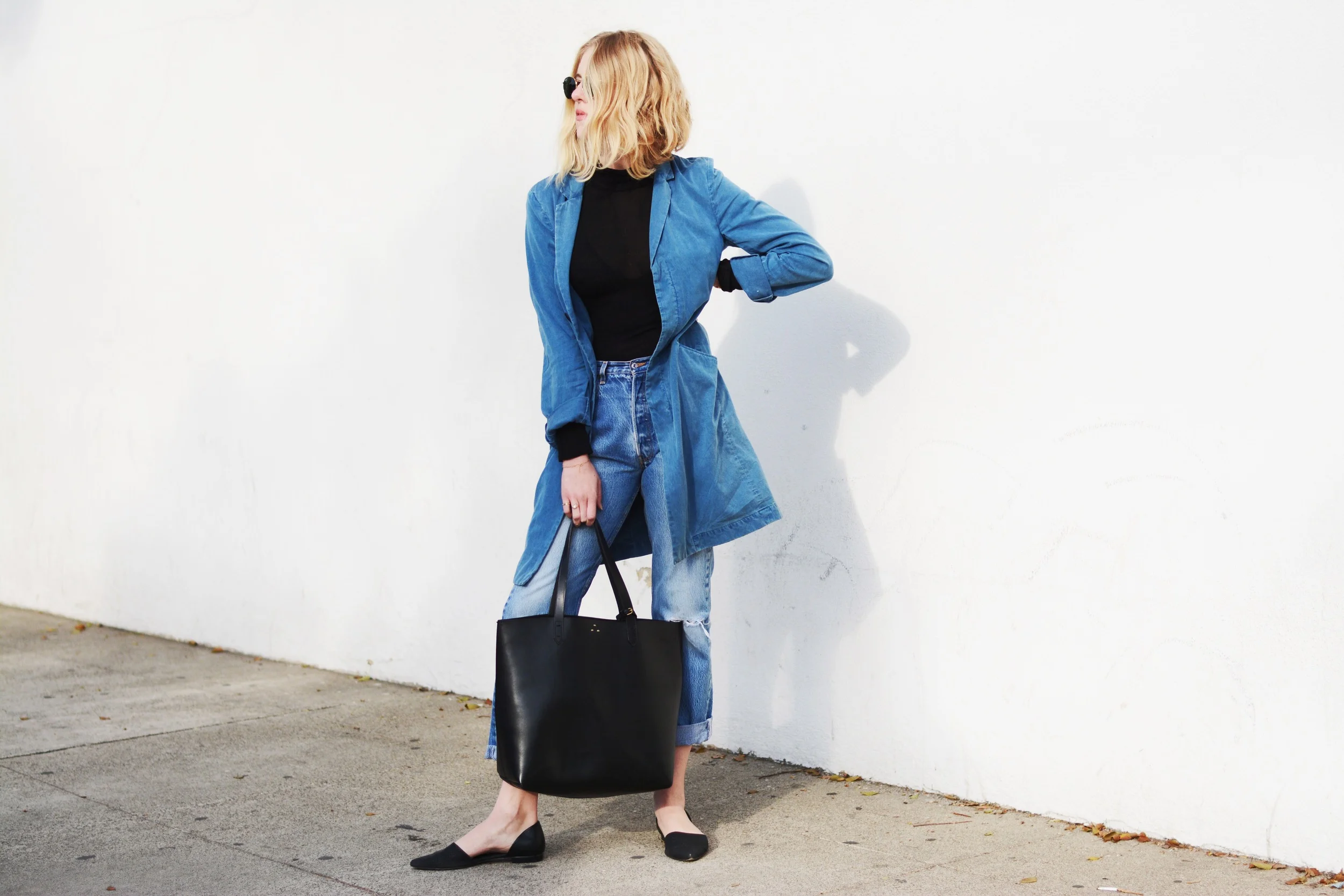 DENIM DIARIES View fullsize View fullsize View fullsize View fullsize Always wearing denim.Vintage 501 Levi's | Kuro Menswear Indigo Blazer | Gold Frame Ray-Ban's | Kelsi Dagger Tote | Calvin Klein Pointed Flats FashionTaylr AnneFebruary 24, 2015Comment Facebook0 Twitter LinkedIn0 Reddit Tumblr 0 Likes