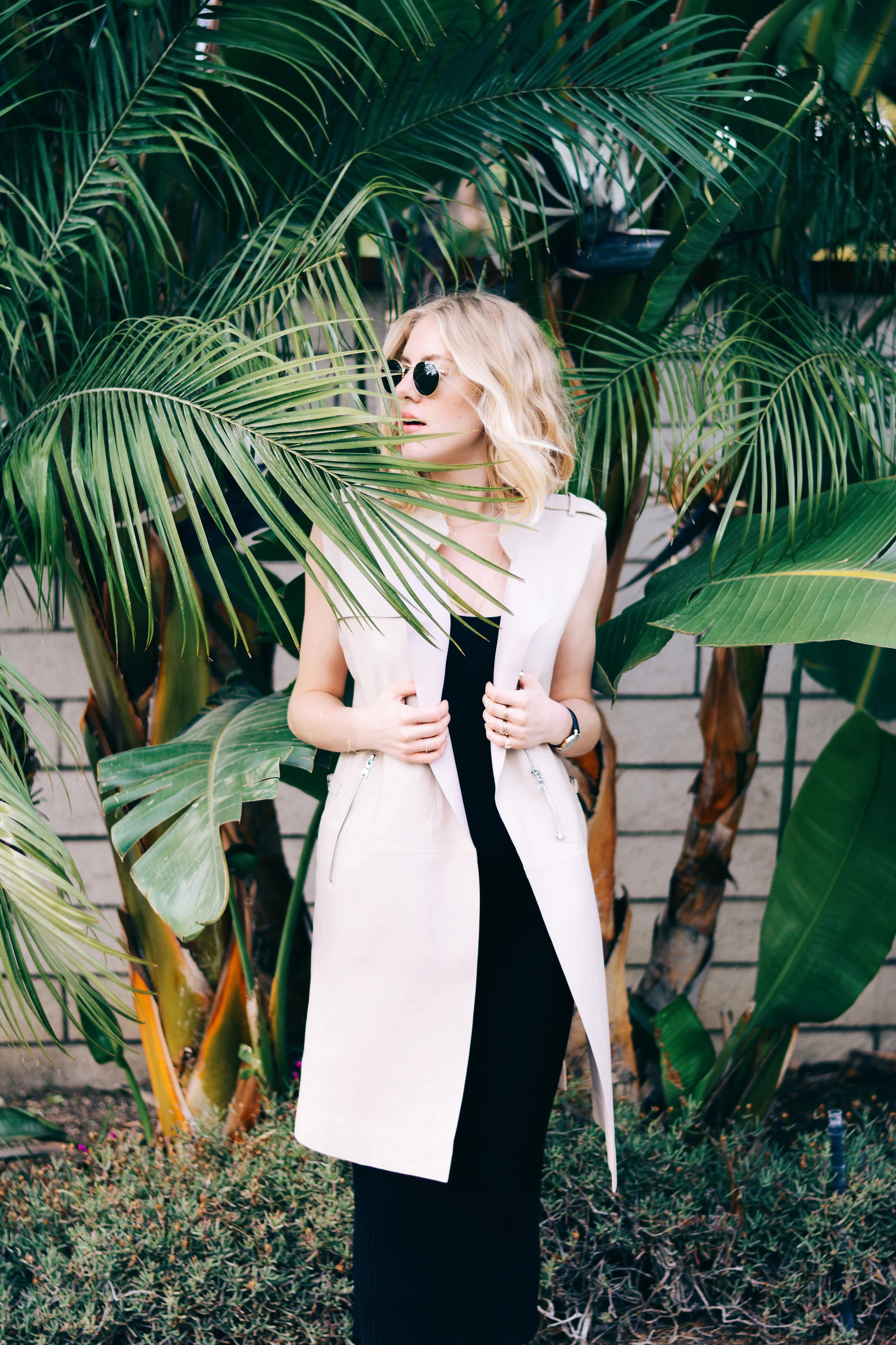 The second leather piece I chose to style from ashley B's Spring collection was way killer. In a beautiful blush color, this piece is the perfect garment to throw over a fitted dress, boyfriend jeans, a tee.. you name it, and it looks awesome over it. Here, I have it paired with a new ZARA ribbed midi dress and my Ray-bans that I think are glued to my face. Overall, I felt pretty cool in it, just saying (part 002 coming soon).