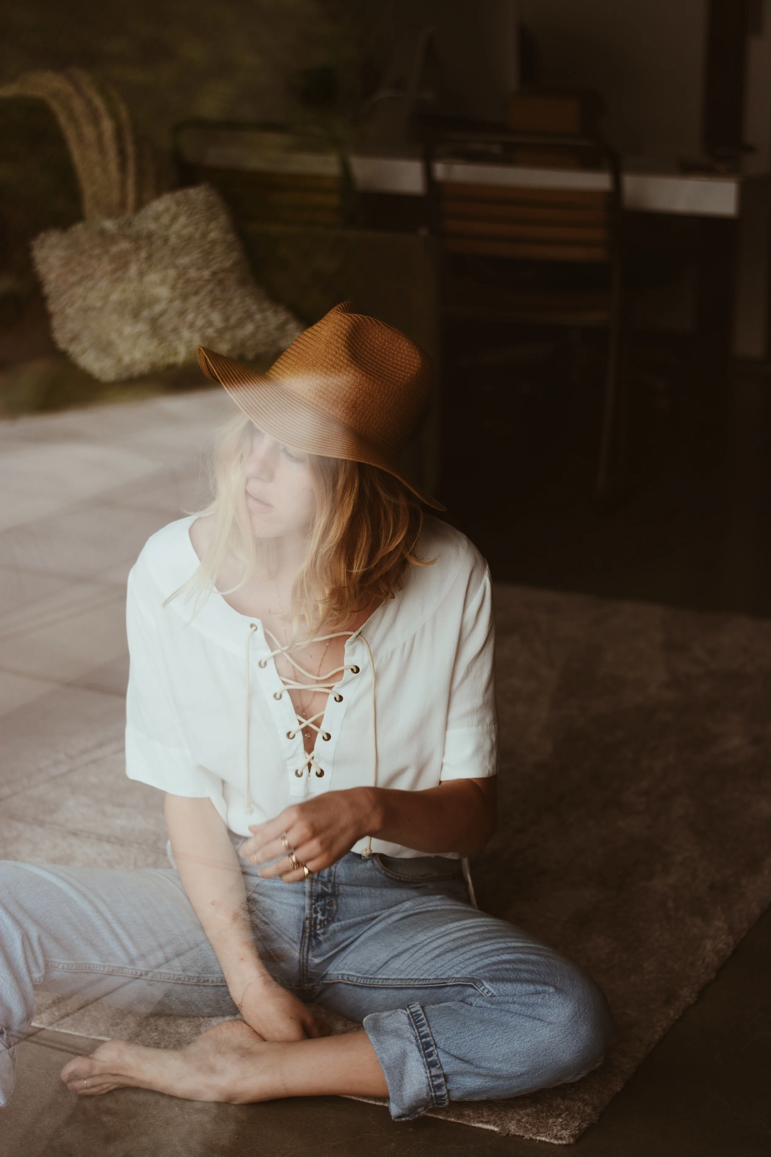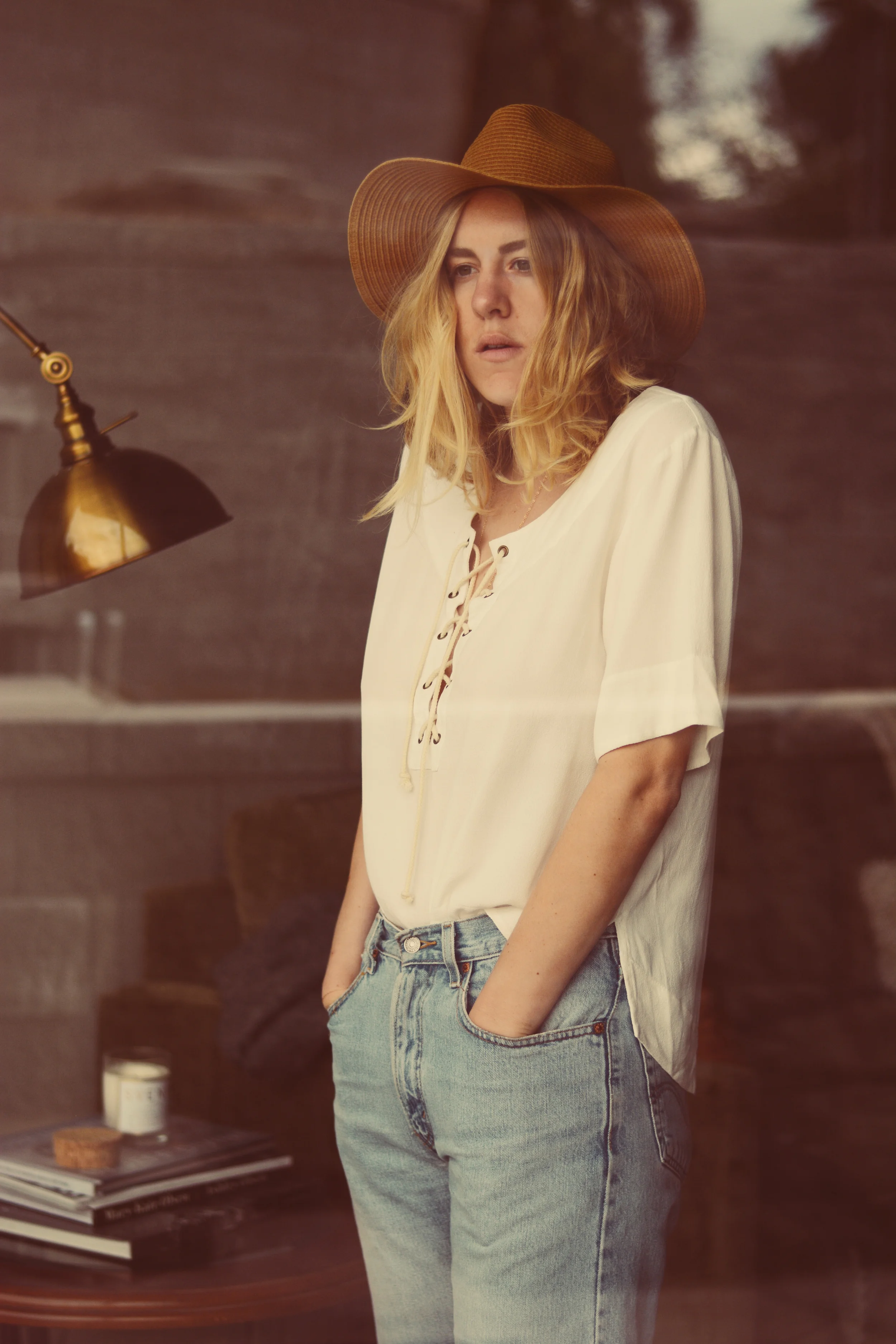 Zulu & Zephyr Lace-Up Top | Vintage Levi's | Madewell Straw Hat | Jess Hannah Jewelry
