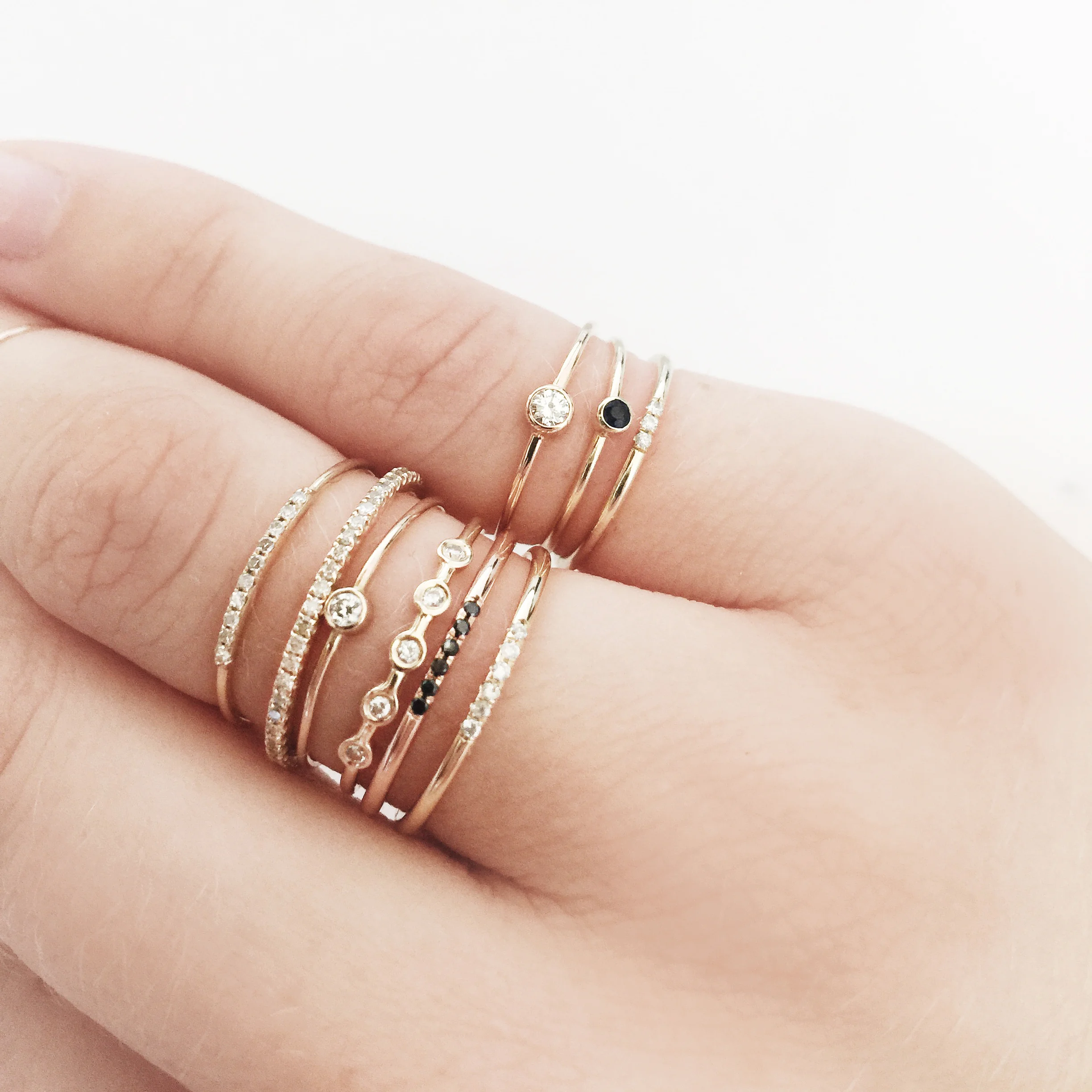 The Diamond Horizon Ring by Ariel Gordon Jewelry has quickly become one of my favorites in my diamond stack. With five 1 pt white diamonds, this pretty ring was love at first sight. I like to stack my rings, so daintiness is a must for me, but it even looks good all by itself. Well, of course it does.