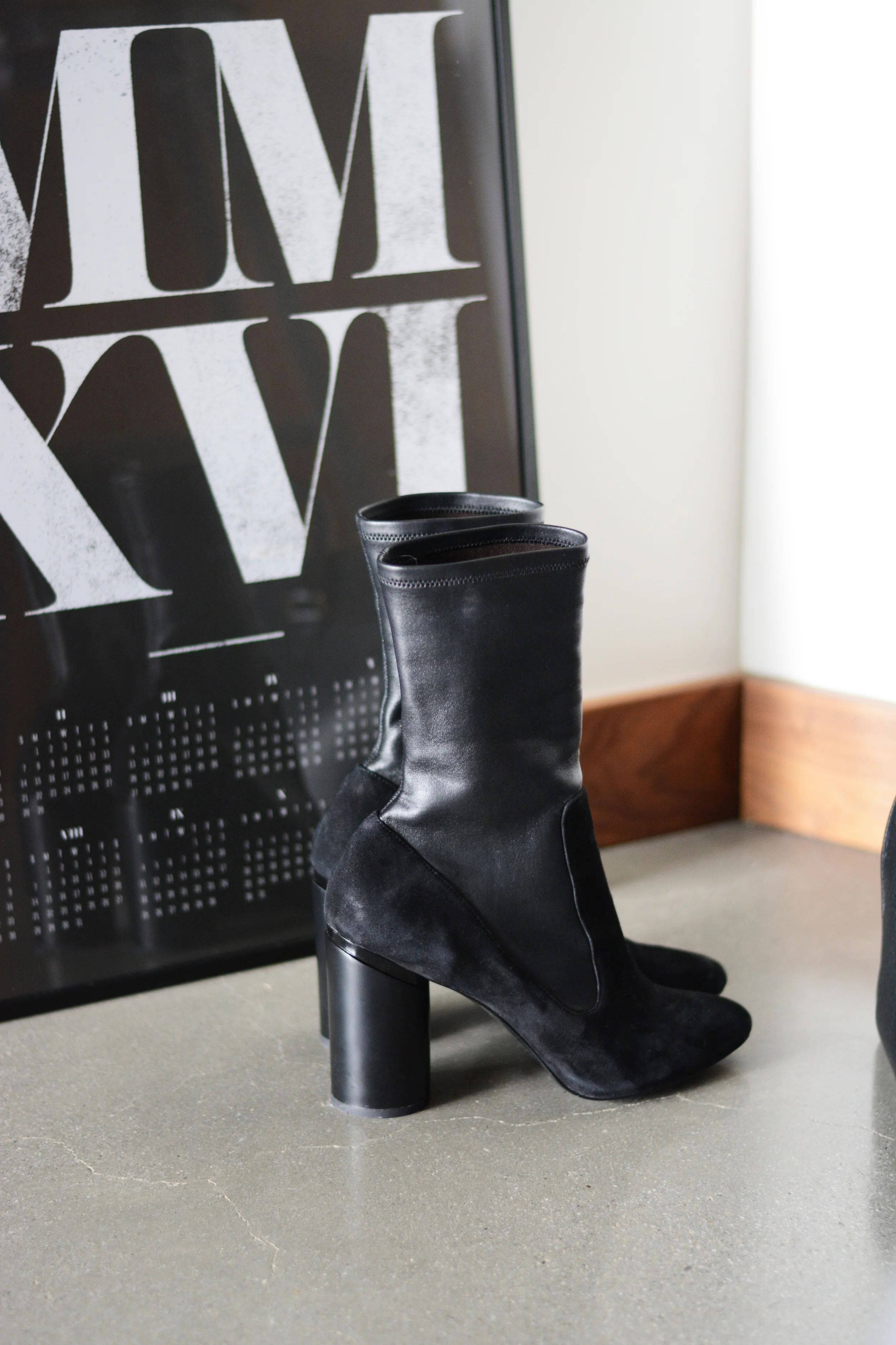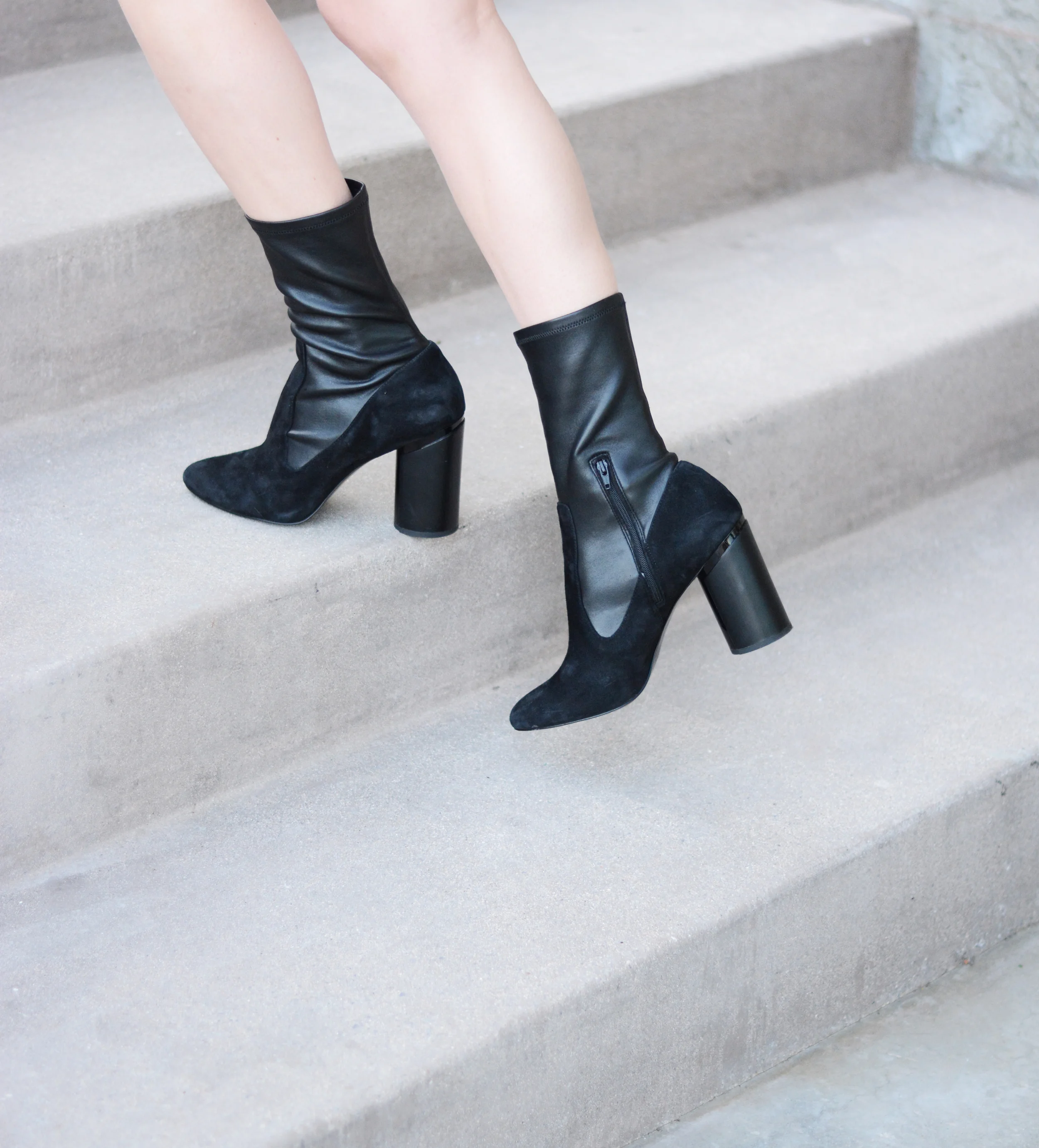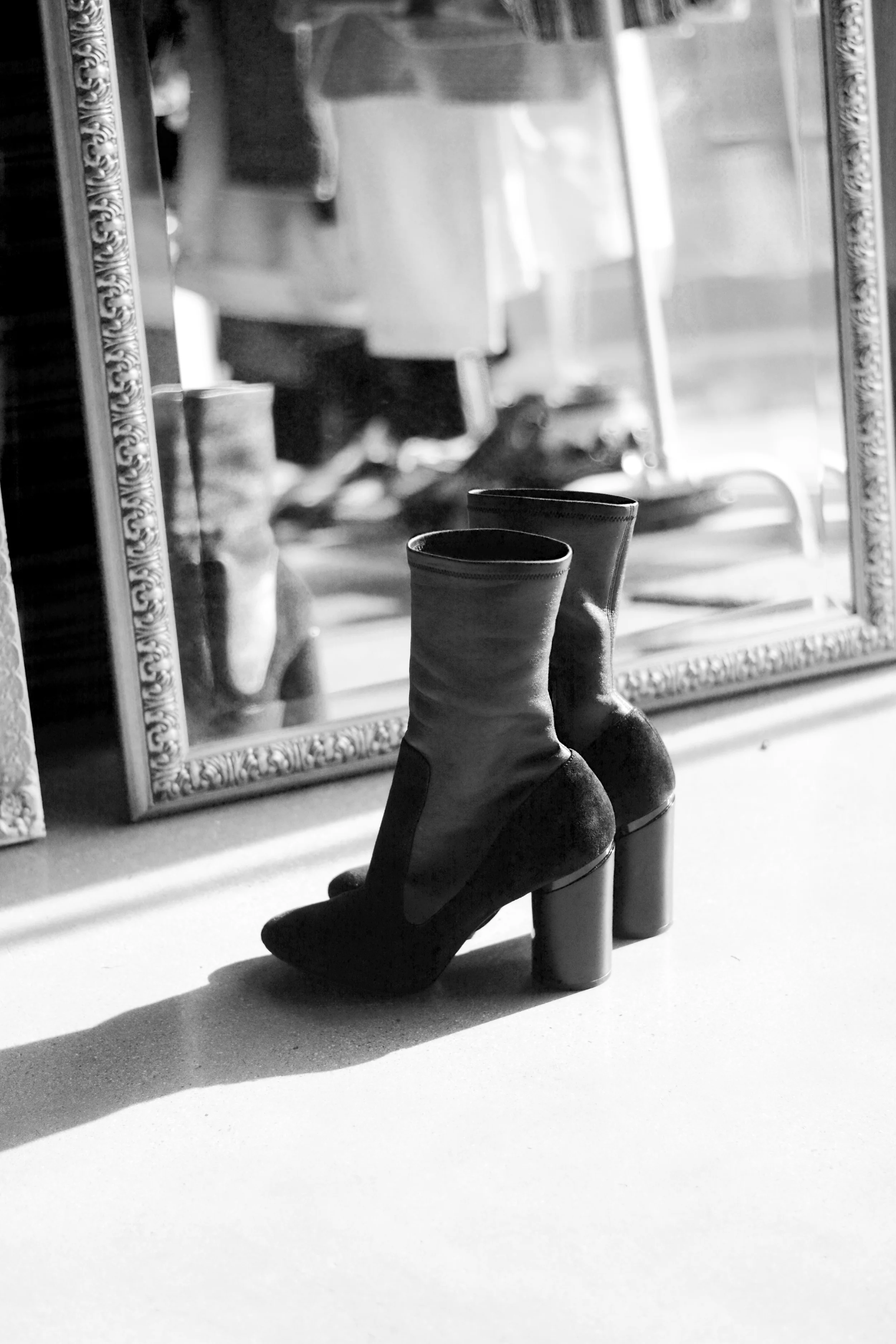 I've been on the hunt for a killer pair of sock boots. And... heavens have I found THEM. At a $160 price point and a heel that makes my mouth water, I can confidently say these boots are what dreams are made of. They are comfortable and fit true to size– bonus points. Pair with frayed denim or a short dress, or you know, whatever the heck you want because people will be staring at your feet anyways.