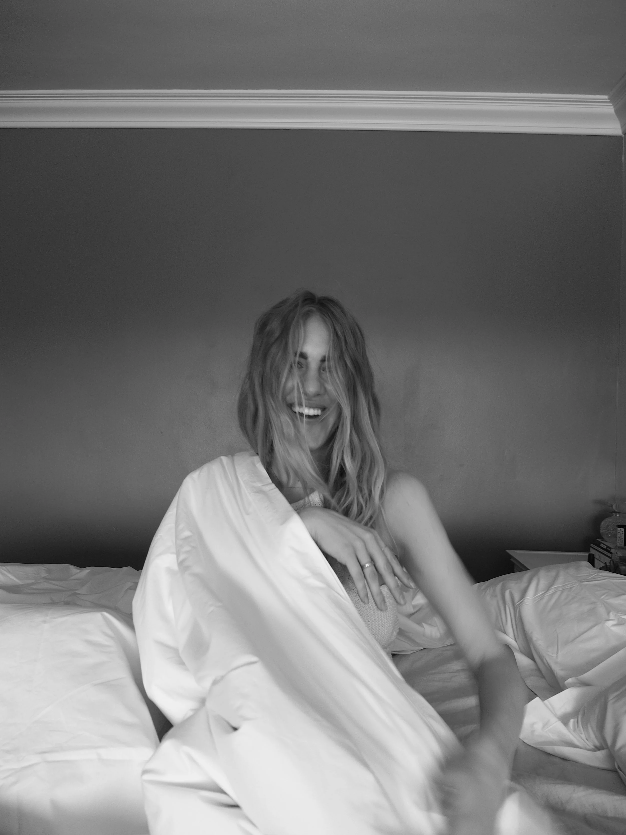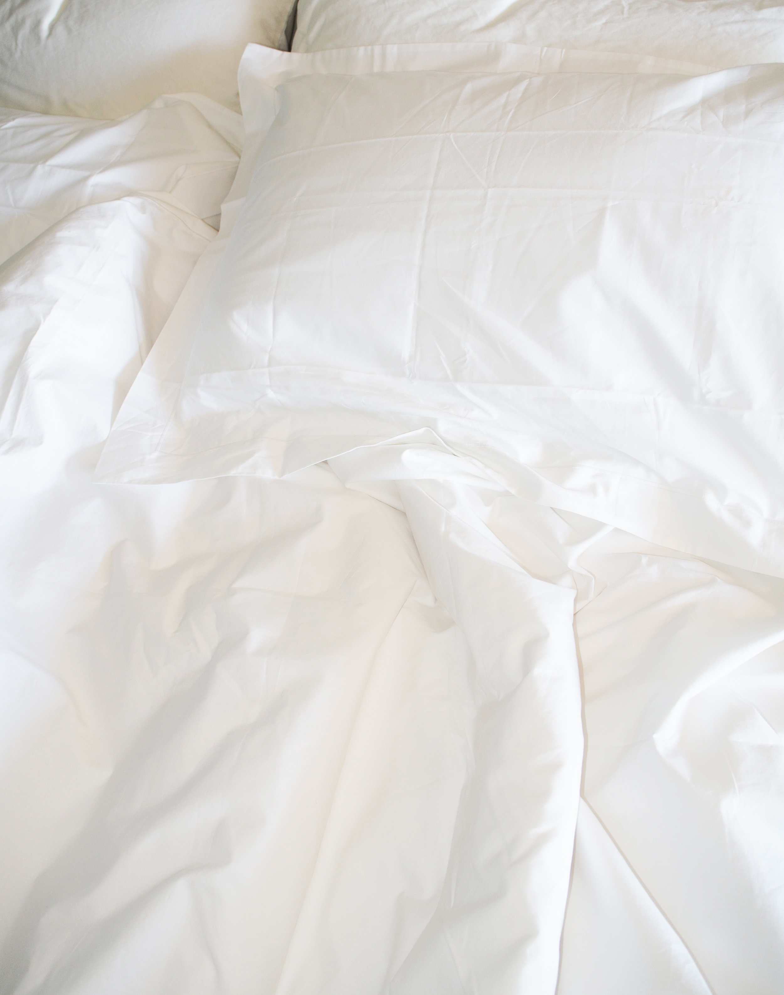 Three things to describe the perfect bed situation: white cloud-like bedding, a lover, and no morning agenda.