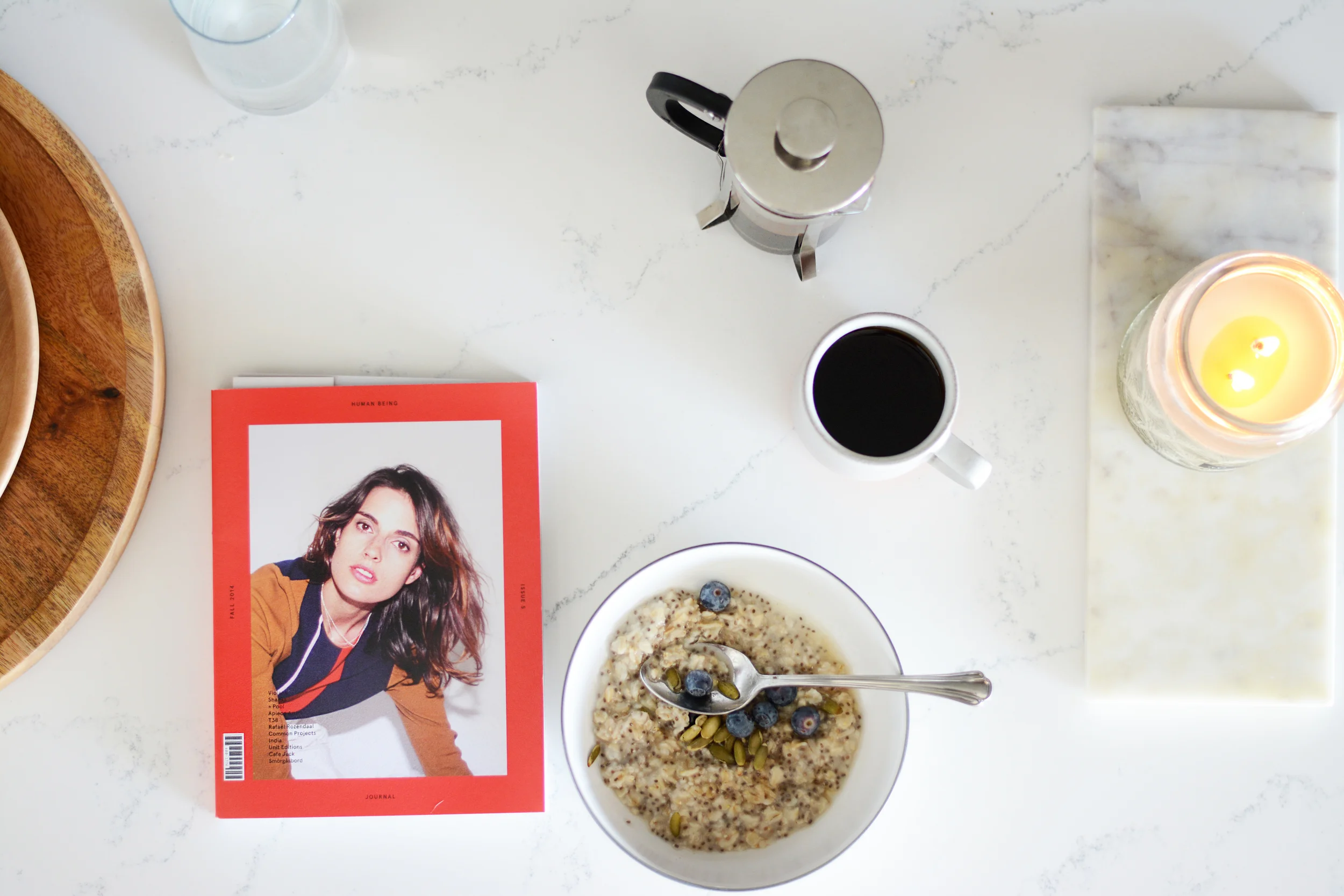 Coffee in the AM; usually paired with a bowl of oatmeal, AND always WITH something to read.