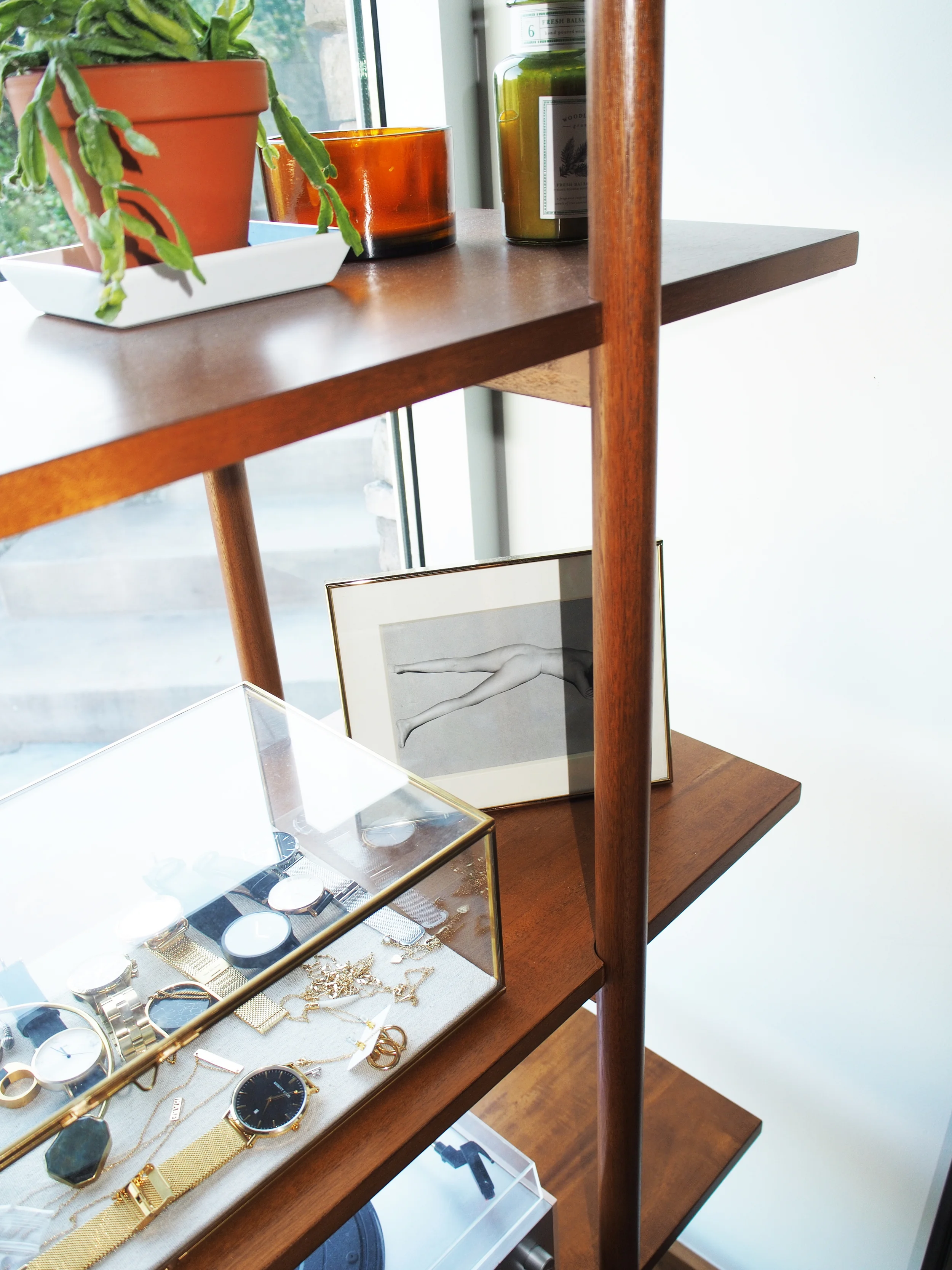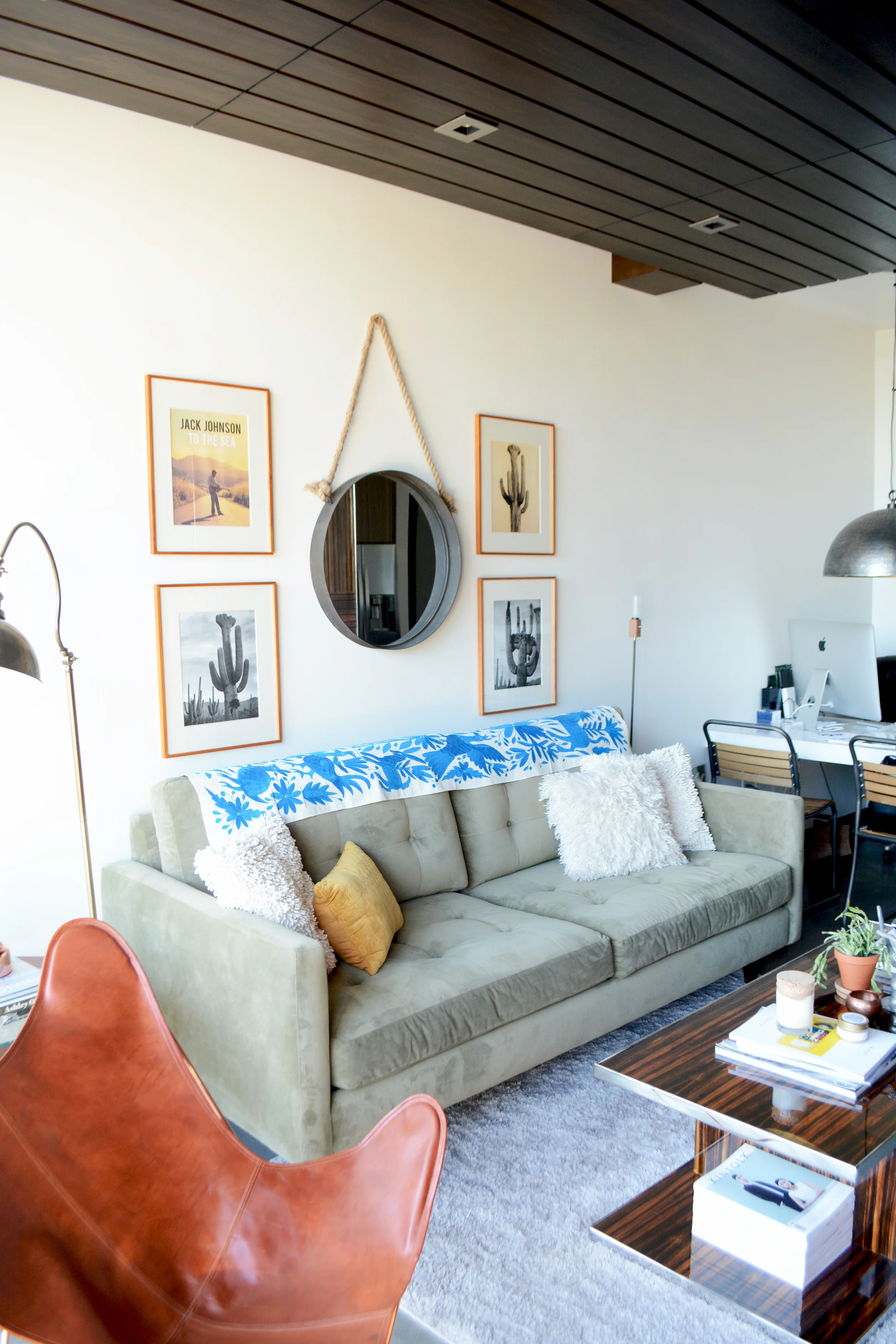 Claire asked me if I was happy with everything and if I wanted more options to choose from. We played around with ideas, swapped out some vases, and finalized the visual of exactly what I wanted. It was perfect! I decided to go with two gorgeous midcentury acorn wood bookcases, along with a wooden frame full length mirror, all from West Elm. Adding things to my cart was easy, and with a touchscreen-click, I checked out. That was it? I could hardly believe it. While I was busy at work, focusing on answering emails and shooting projects, a designer was thoughtfully working on my space, my home. With full trust, Claire knew exactly what I was looking for. She knew how important my studio is to me because I work and live from my space; I want this to be somewhere I always like to be. A place I could feel inspired, and also a place I could host the ones I love. I couldn't wait to see my vision in real life.
