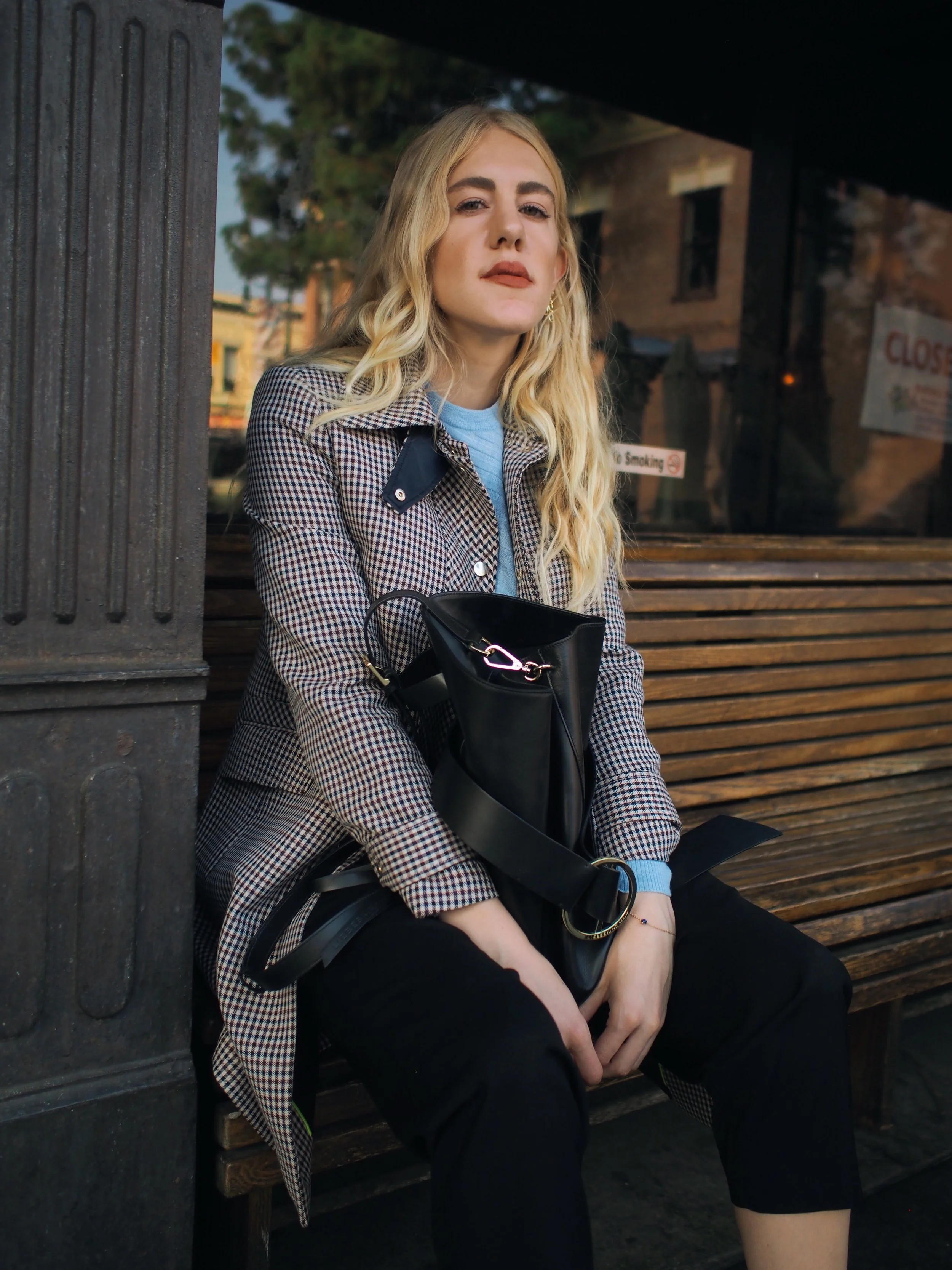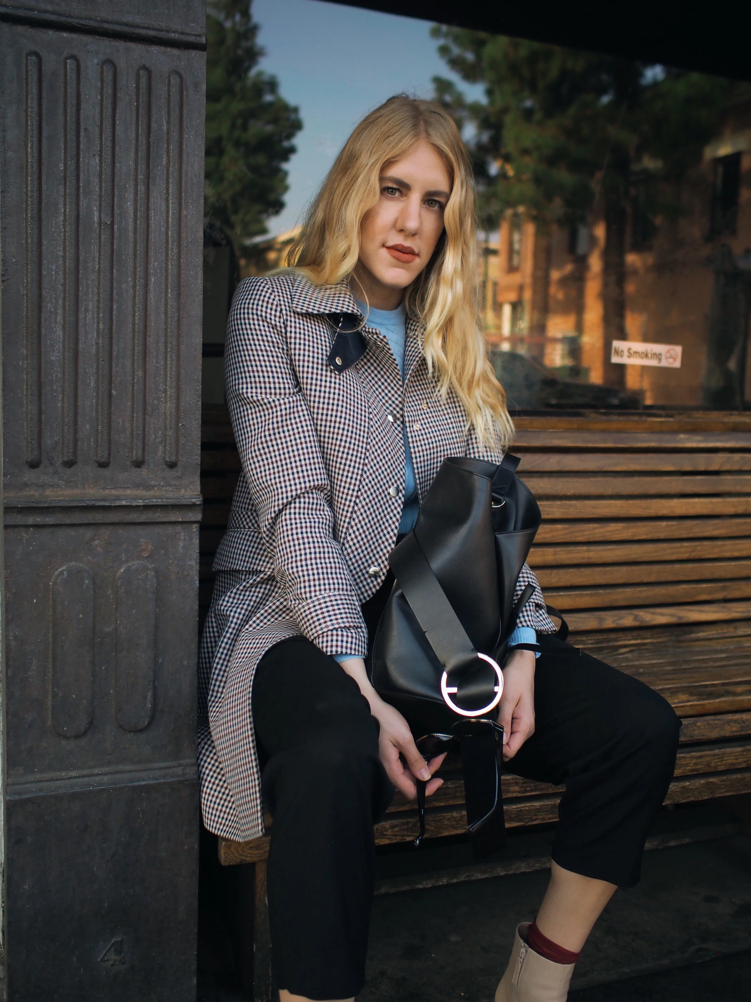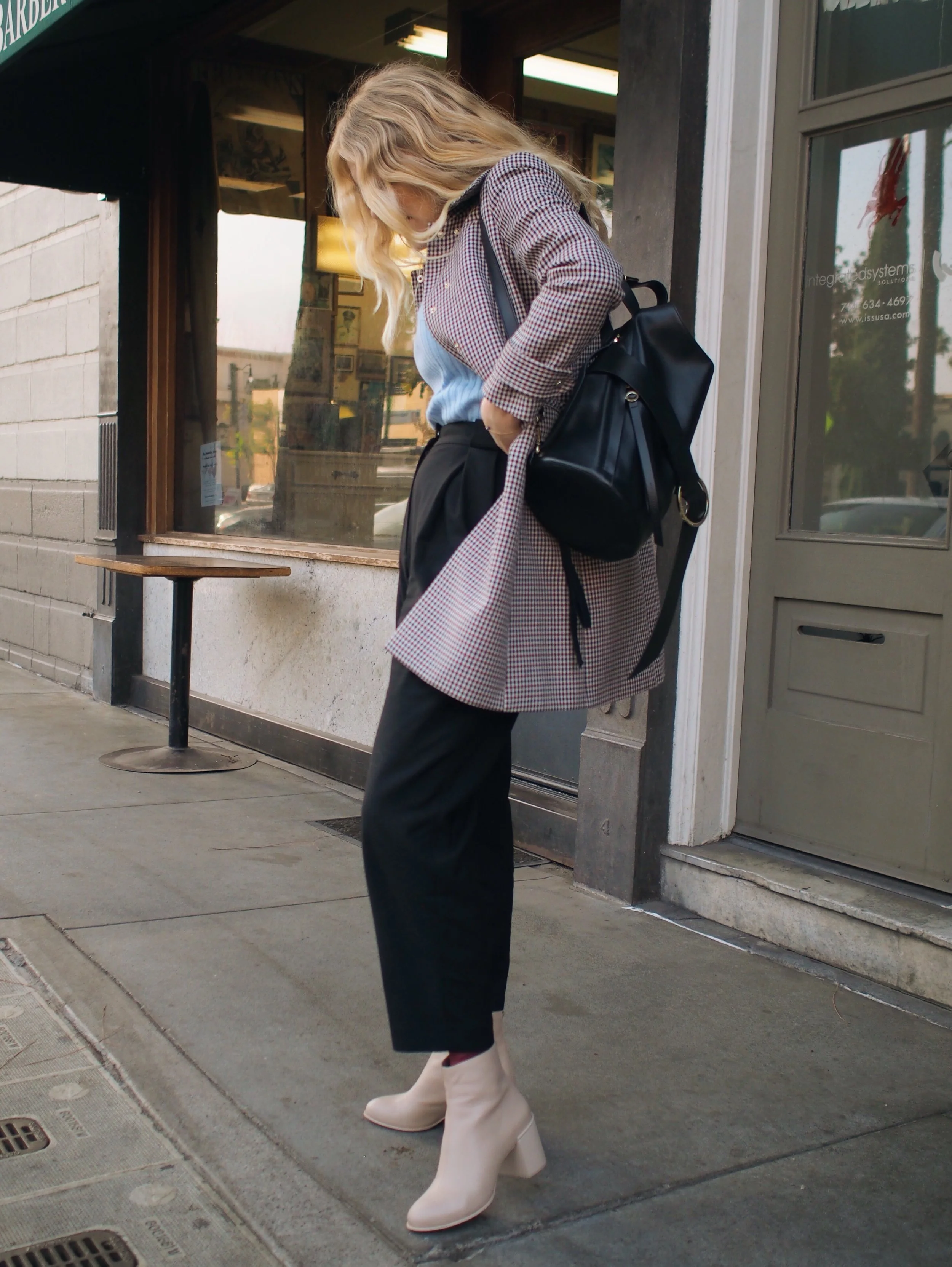Lately, I've been really into anything gingham or plaid. After connecting with brands from New York and Paris for Fashion Week (well.. month), I found the perfect combination of both the best coat and bag for the Fall season. This Tara Jarmon Two-Tone Gingham Coat is classically cut, but modernized with pops of neon interior and button detailing. Based in Paris, this brand has the most gorgeous pieces for winter. I paired this look with straight wool trousers (also from Tara Jarmon), a thin knit from Inexclsv and neutral boots via DKNY. Lastly, finishing the look with an extremely convenient bucket bag / backpack that can be converted to either. Win-win.