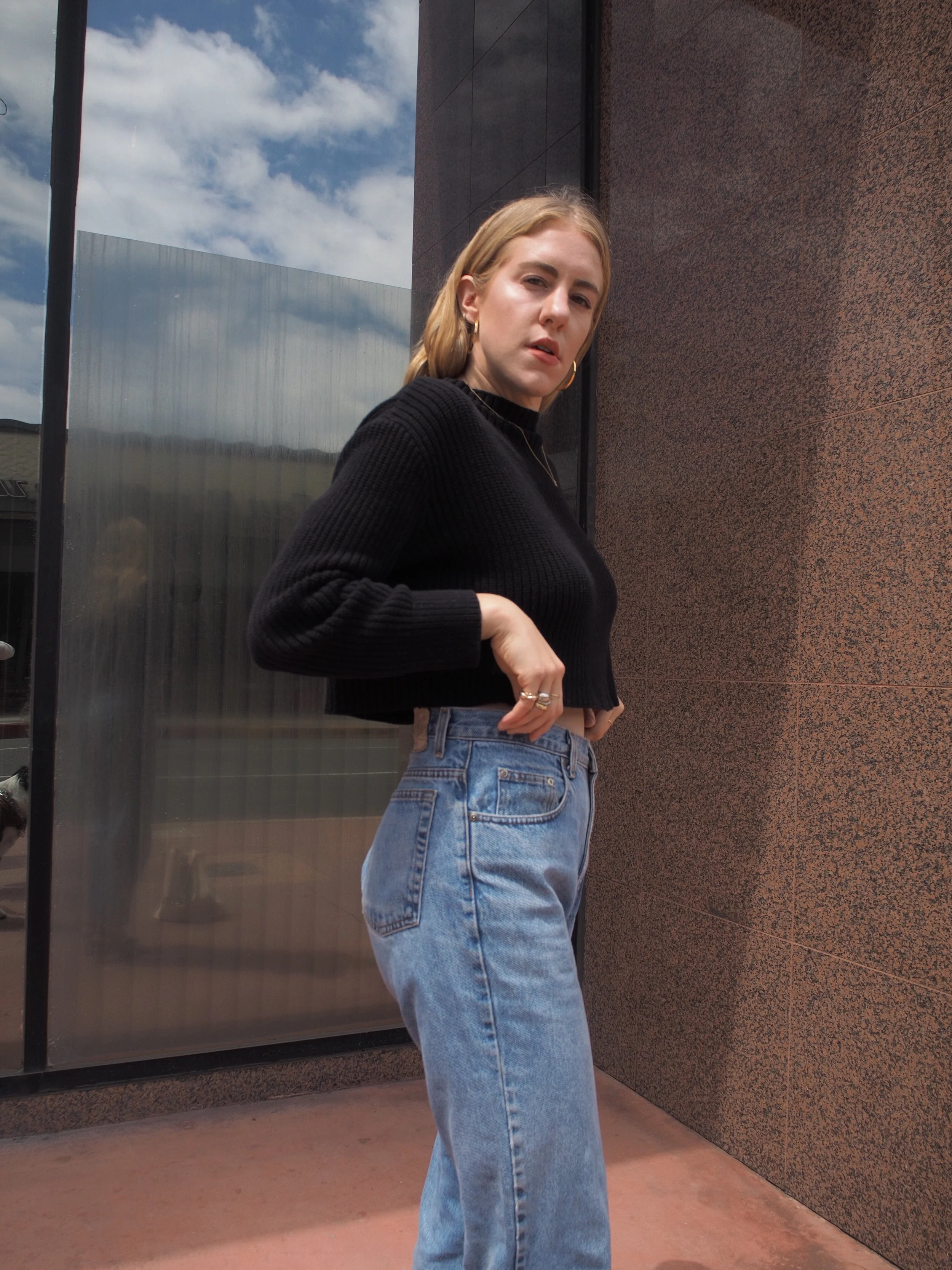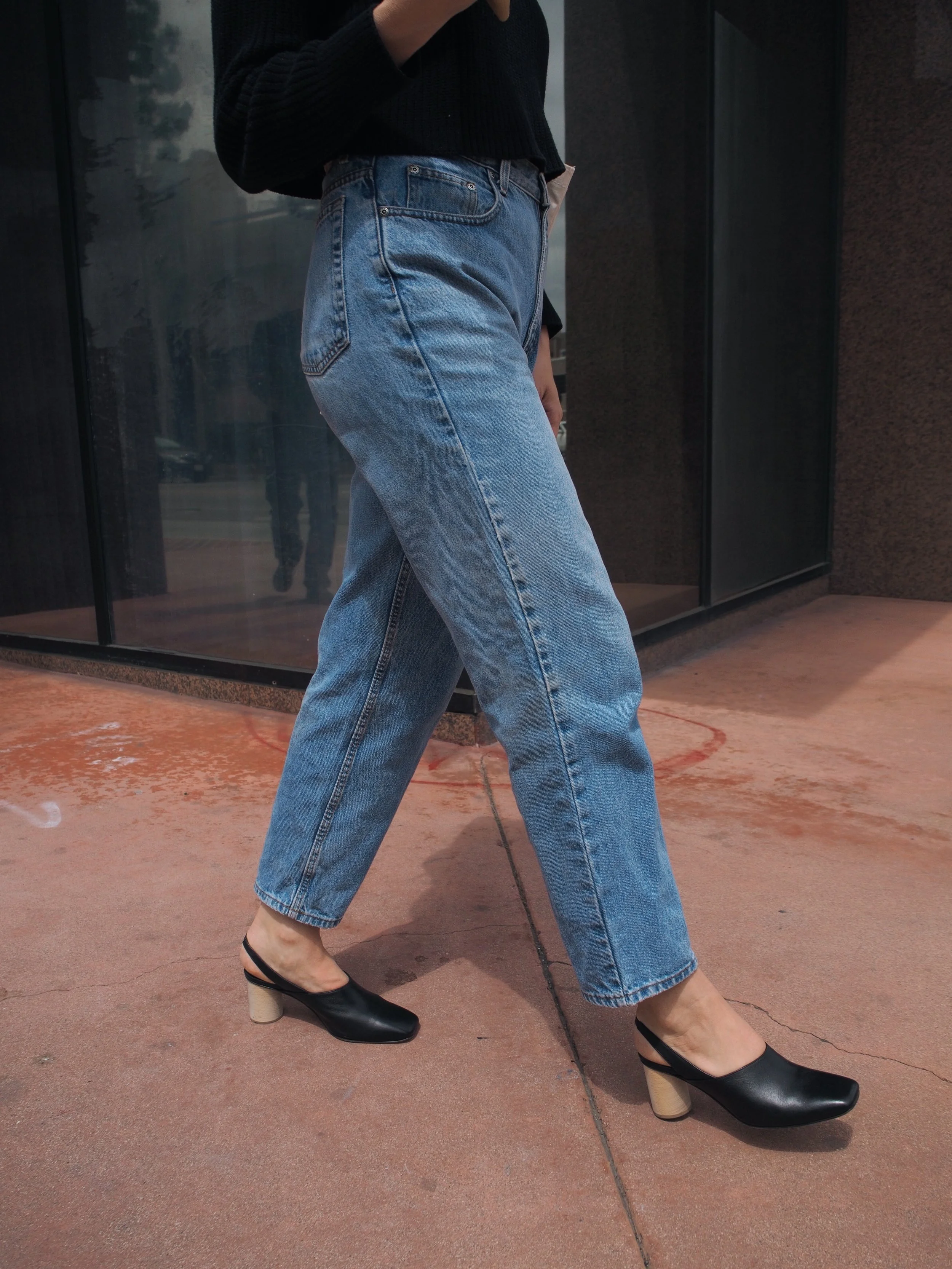 I can't forget to mention the shoes I am wearing by Shaina Mote, which are now available for preorder. I know without a doubt I will be living in these shoes from now on. Advanced apologies (but not really) for how often you will be seeing them on my feet. Paired with my current favorite vintage jeans and an old cropped sweater, I feel the most myself, and most flattered for my curvy body type, in a relaxed look like this one.