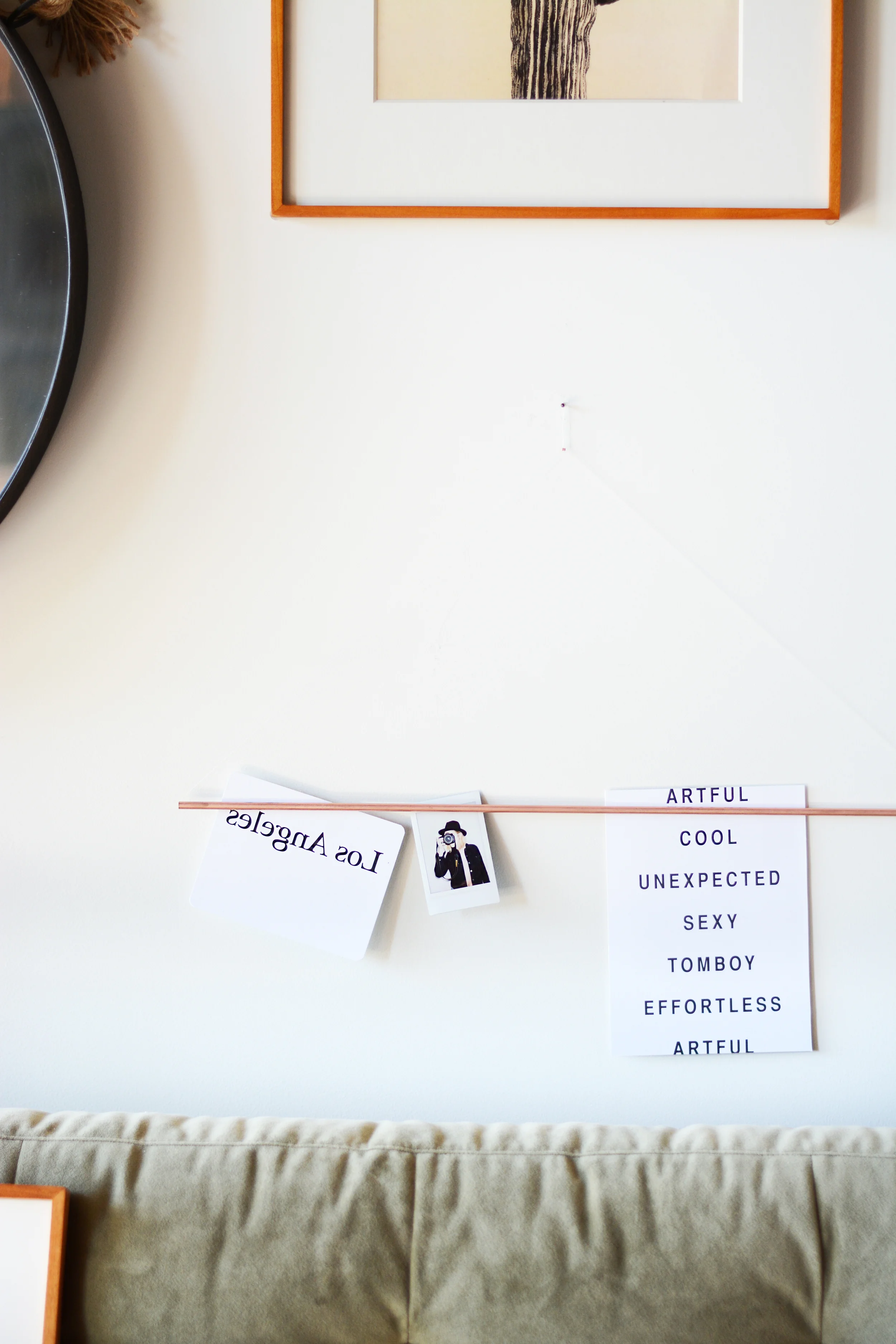Another piece I found to add to my studio was this minimal copper wall hanging, with six magnetic dots to display whatever I want (polaroids, notes, art..). I love rotating polaroids and adding new things to look at to keep it refreshing. It also comes with a copper nail to add to its aesthetically pleasing look.